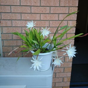 Phyllis is an epiphyllum oxypetalum – https://www.gardenclinic.com.au/how-to-grow-article/queen-of-the-night – and is said to bloom “only rarely” !!