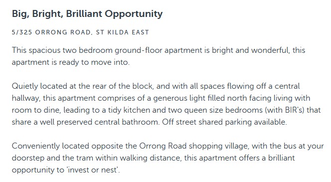 Tomorrow I was booked to view a place that looks like me, in Werribee. Well, you know what I mean. It was I who called the agents yet again to ask why the viewing time was no longer showing on the ad: and they casually told me the unit had been leased. No-one had the slightest intention of letting me know; and I would’ve travelled from Melbourne to Werribee for nothing.