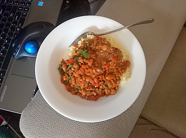 You are at liberty to re-change, should you so wish. But I can tell you that with my alterations this recipe is singularly yummy. In fact, I’m finding it fairly amazing how delicious all these vegetarian recipes are .. but that is not to say that I haven’t tried some and cast them into exterior darkness as soon as tasting ’em. You’re seeing only the successes: what else ?!
